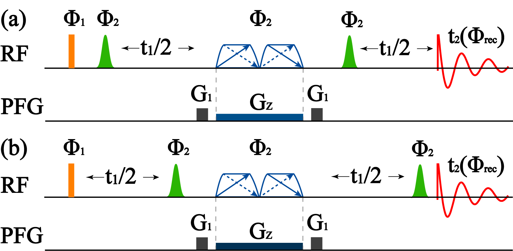 图1.N型(a)和R型(b)的二维PSYCHEDELIC脉冲序列。
