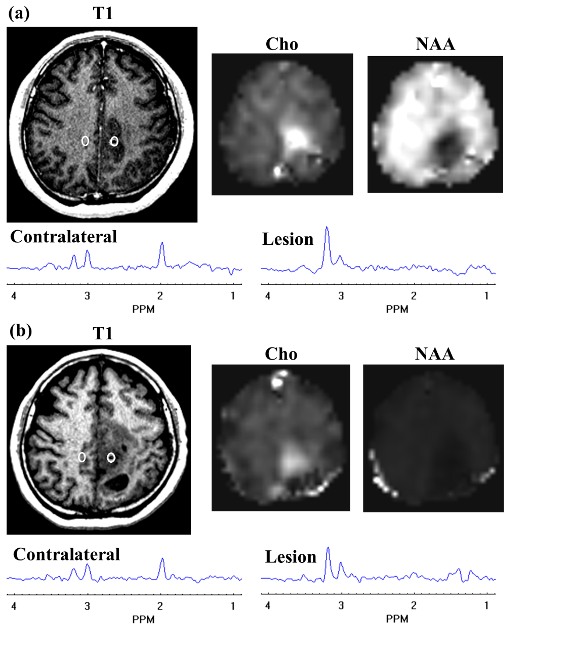1. Volumetric 3D analysis of high grade glioma at pre- and post-radiation therapy by magnetic resonance echo-planar spectroscopic imaging